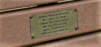 Atop this bluff is a park bench were you can sit with your companion and admire the lake. And you know the FBWG motto..."Never forsake a trail bench". This spot was evidently special as the bench is a memorial bench upon which is inscribed a bittersweet message.
